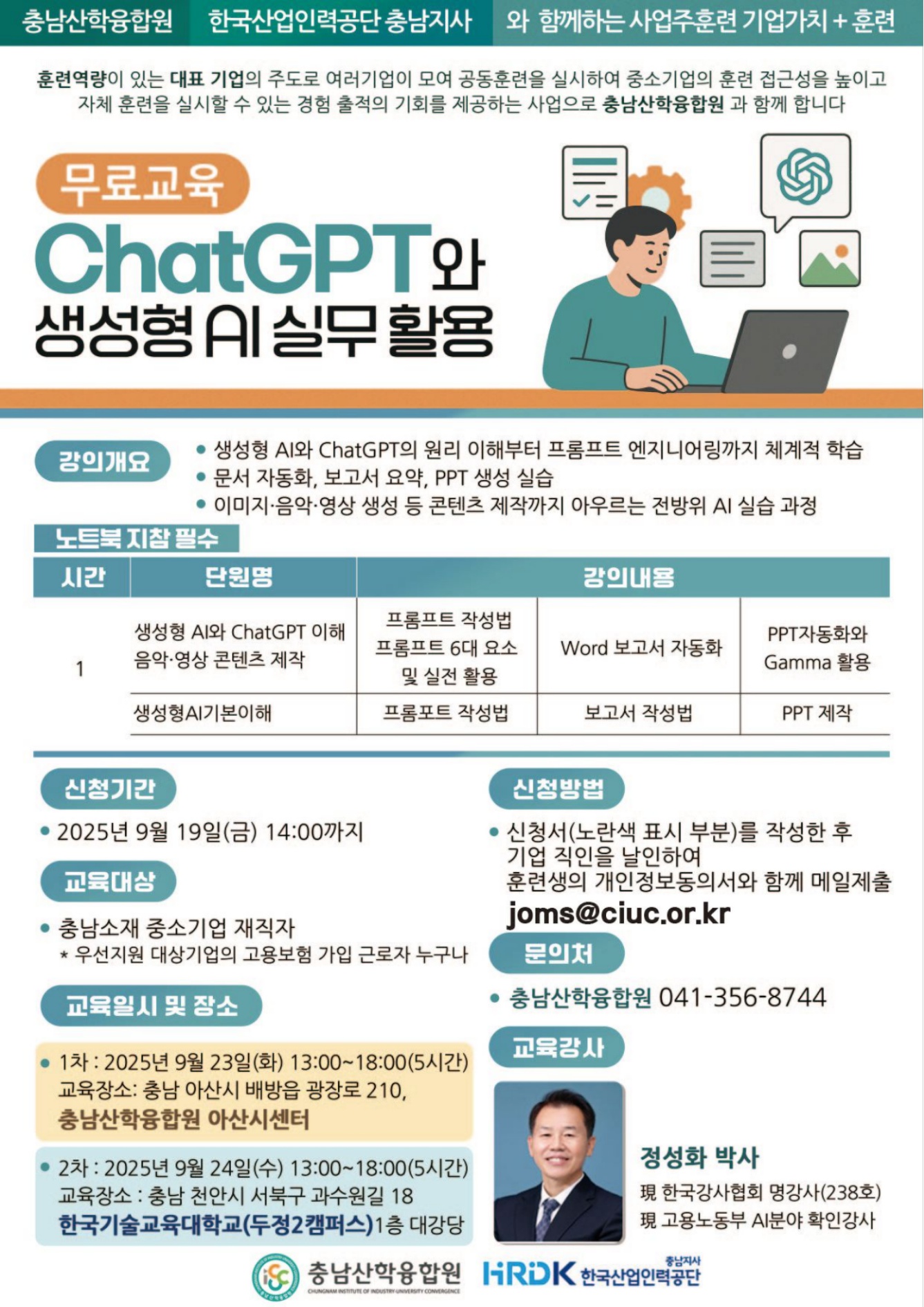 ‒ | [한국산업인력공단] ChatGPT와 생성형 AI 실무 활용 교육 안내 |