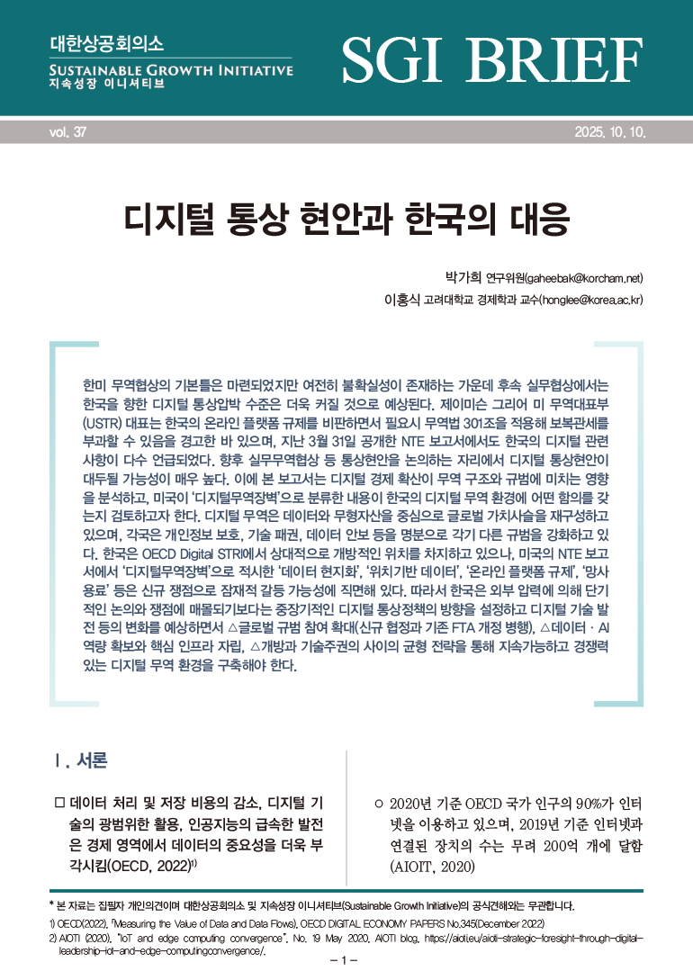‒ | [SGI 브리프] 디지털 통상 현안과 한국의 대응 |