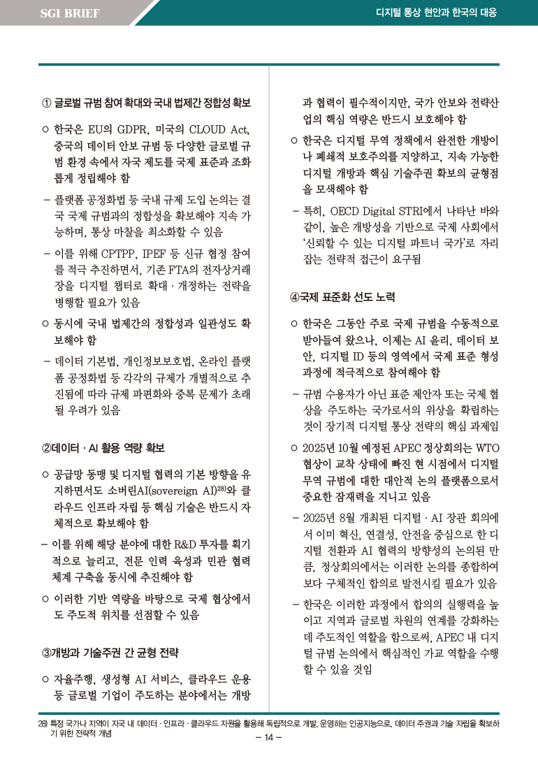 제목 | [SGI 브리프] 디지털 통상 현안과 한국의 대응 | ||