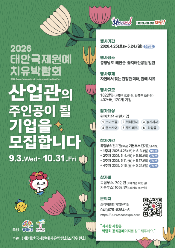 ‒ | 「2026 태안국제원예치유박람회」산업관 전시업체 참가 신청 안내 |