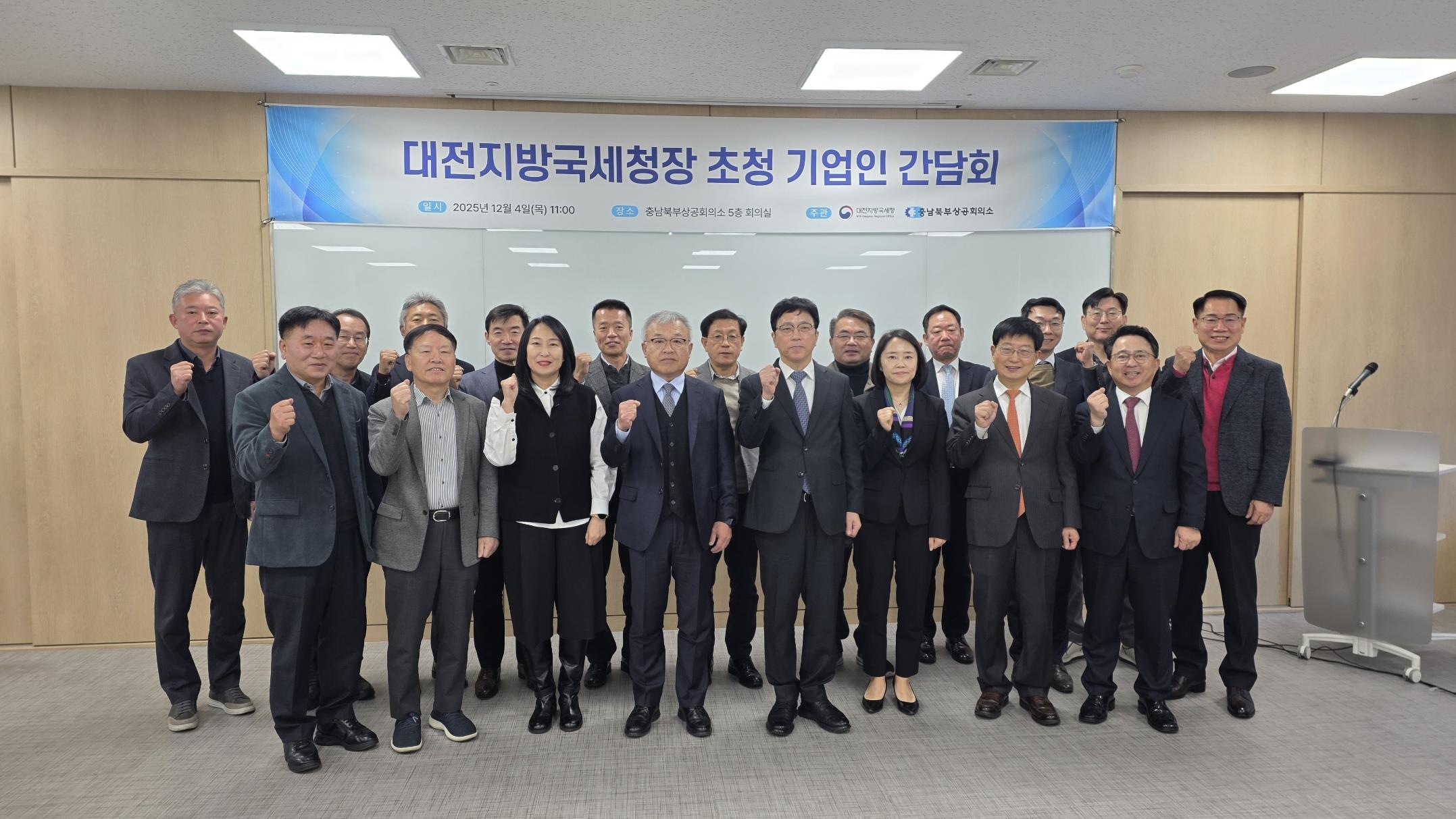 충남북부상공회의소(회장 문상인)는 국세행정 관련 기업들의 애로·건의사항을 과세당국에 전달하여 내실 있는 세정지원 방안 수립에 기여하기 위해 12월 4일(목) 오전 11시, 충남북부상공회의소 5층 회의실에서 ‘대전지방국세청장 초청 기업인 간담회’를 개최하였다.