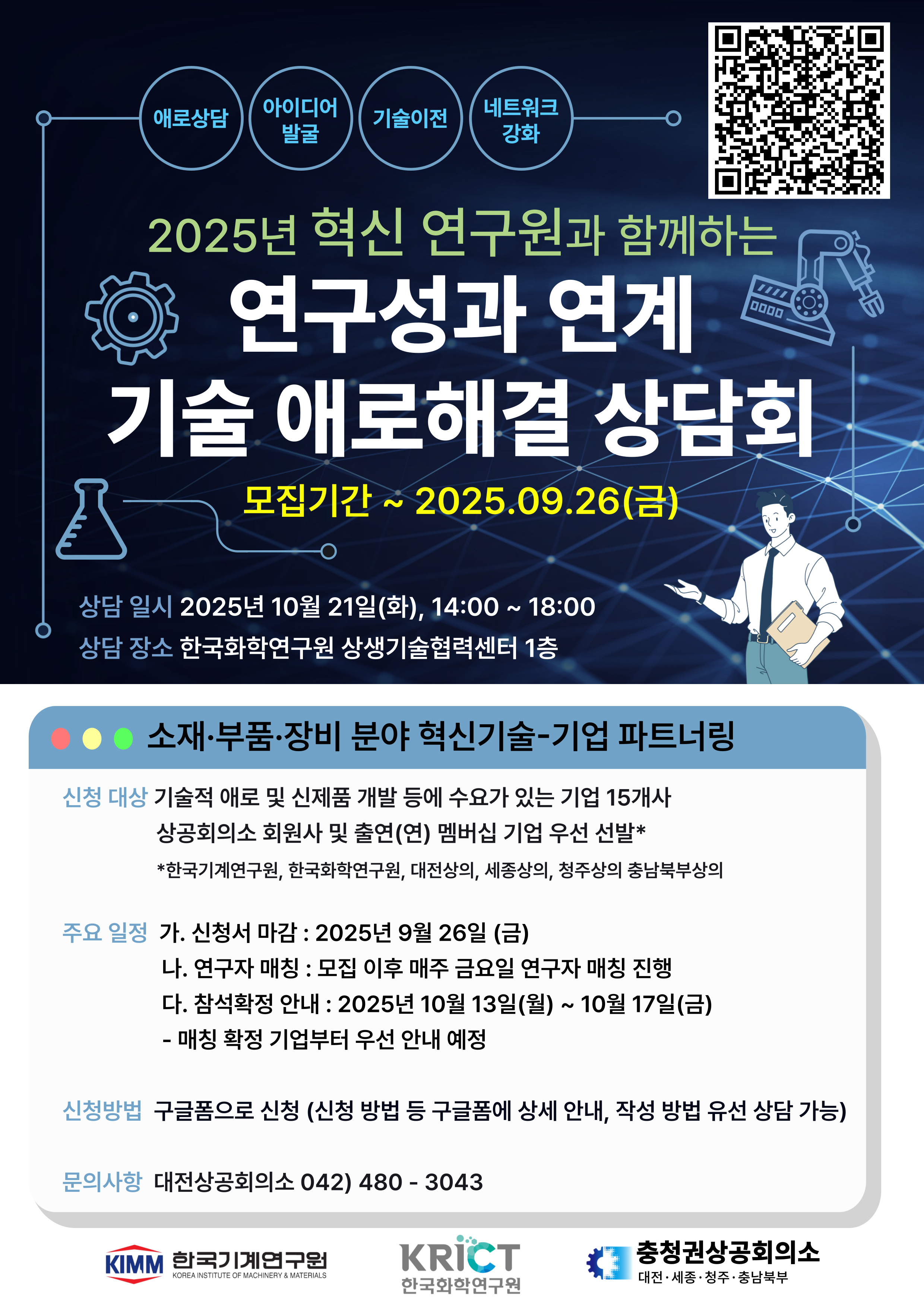 ※ 상담회 개최 일시/장소: 2025. 10. 21.(화) 14:00 / 한국화학연구원 상생기술협력센터
